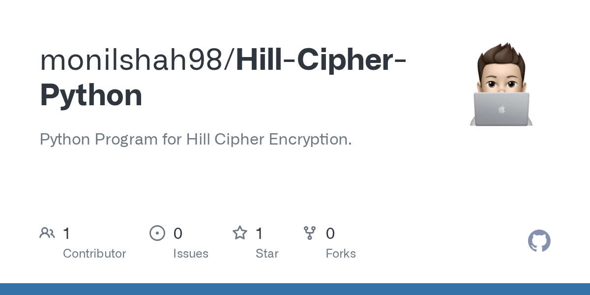 | Topic: Github Monilshah98 Hill Cipher Python Python Program For Hill Cipher Encryption Python Program To Implement Hill Cipher |